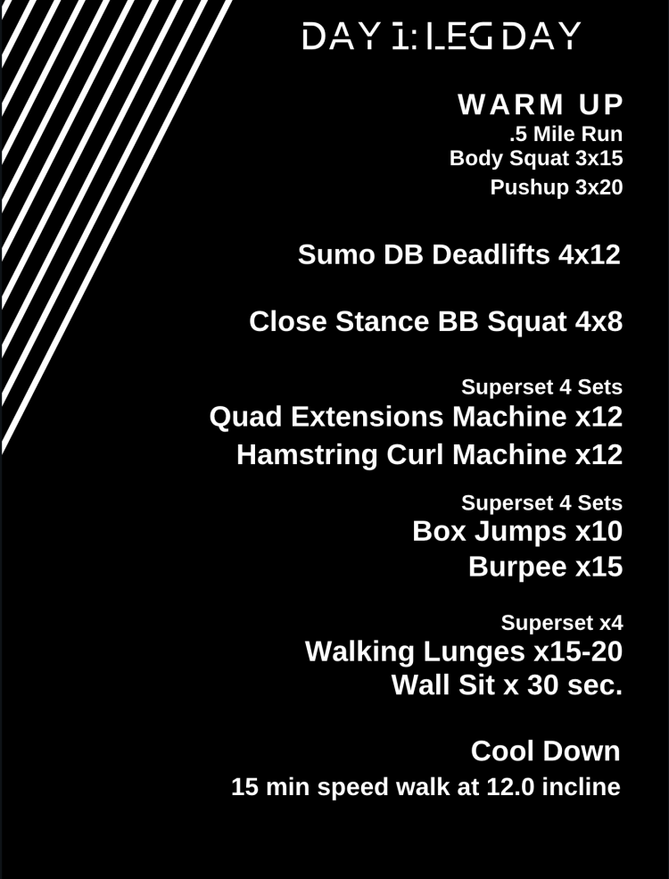 This workout is designed to be a perfect combo of heavy weight and burning repetition. Most of these movements won’t be anything new to you but focusing on your form and working with the right rep count can completely transform the workout. So Ill take you step by step with the workout so you get the most from your leg day!